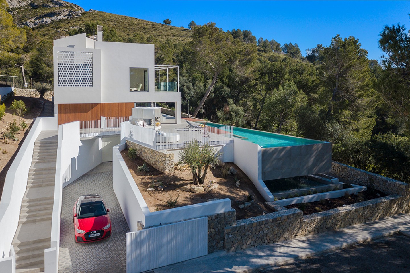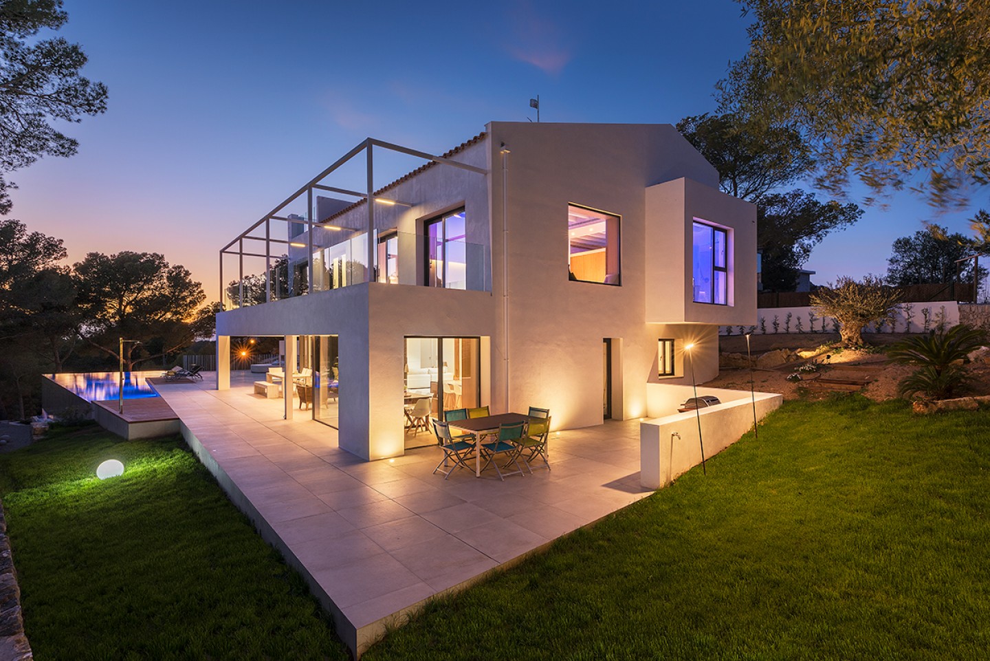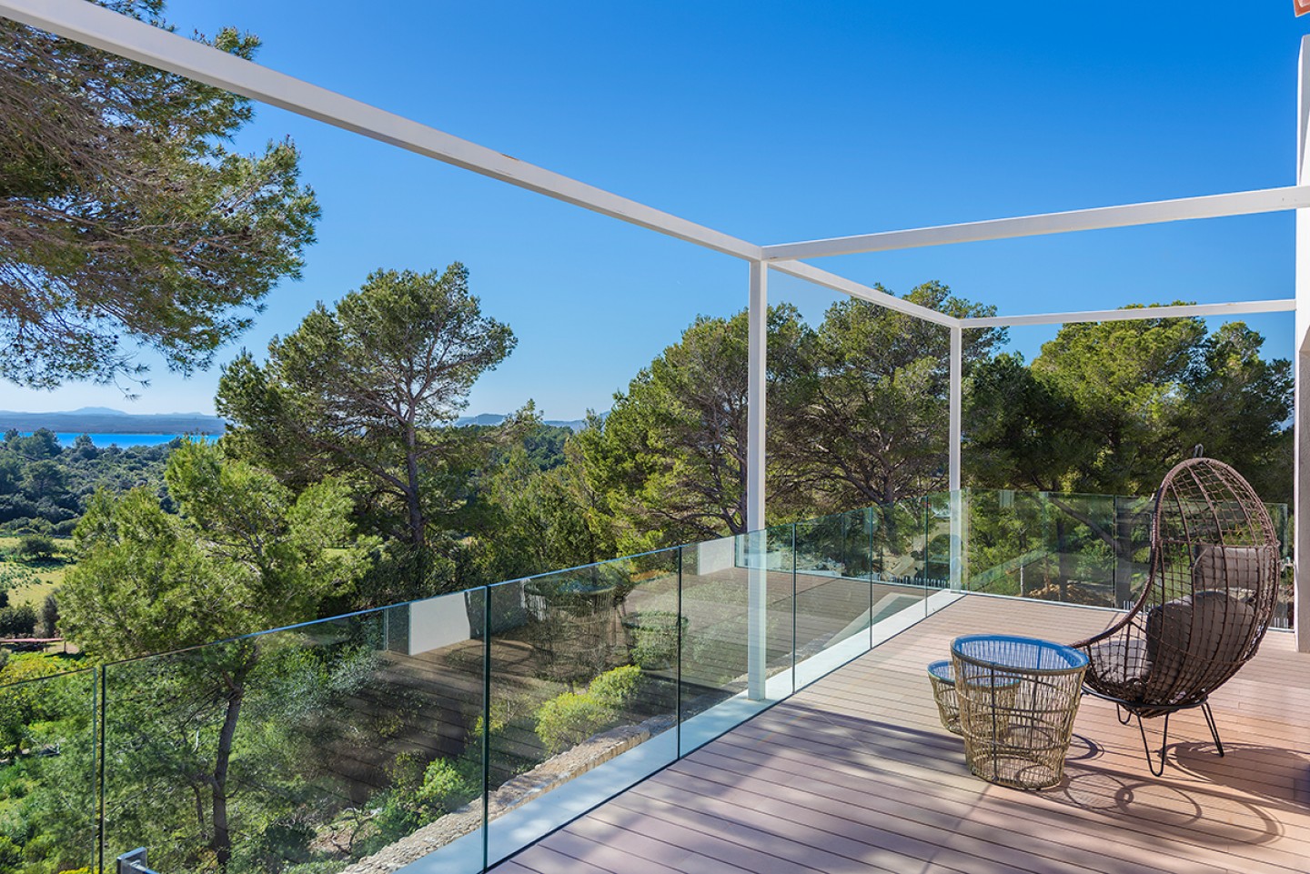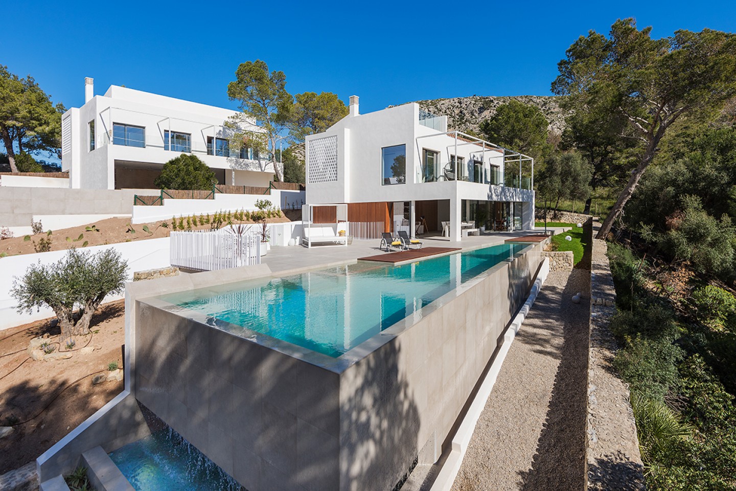 Villa Sky is located in an elevated position and offers a wide view over beautiful forests to the bay of Alcudia. The villa is surrounded by a large terrace and harmonious, well-kept gardens. The infinity pool has a waterfall and a large solarium with lounge chairs and a Balinese day bed. A covered dining area can be found next to the pool. Directly behind the villa is another dining area equipped with a barbecue.
